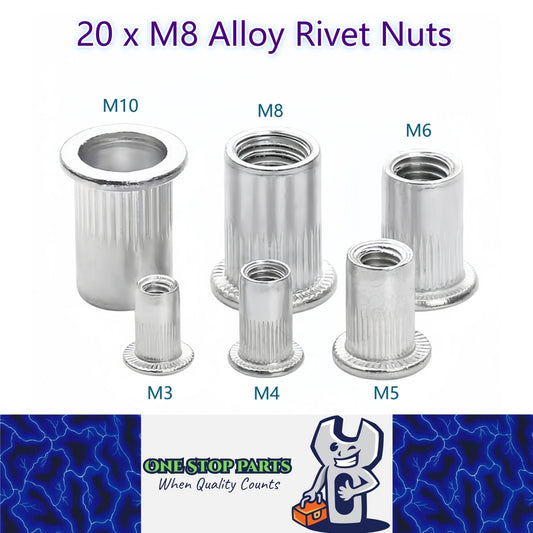 20 x M8 Aluminium Alloy Rivet Nuts- 15mm Wide x 18mm Long Suits 11mm Hole 20pcs