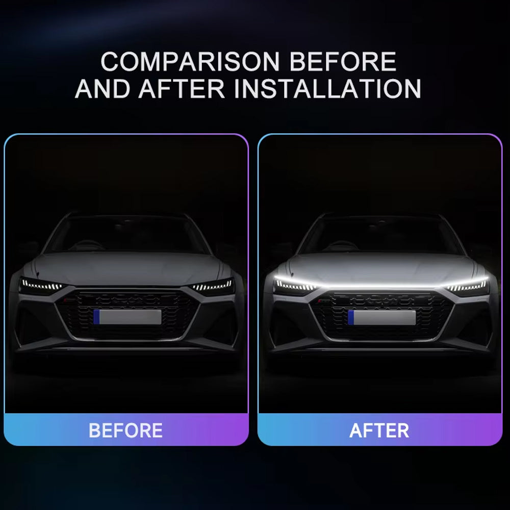 1.8m Blue LED Hood Strip Light Start Scan Dynamic DRL & Yellow Turn Signal Lamp