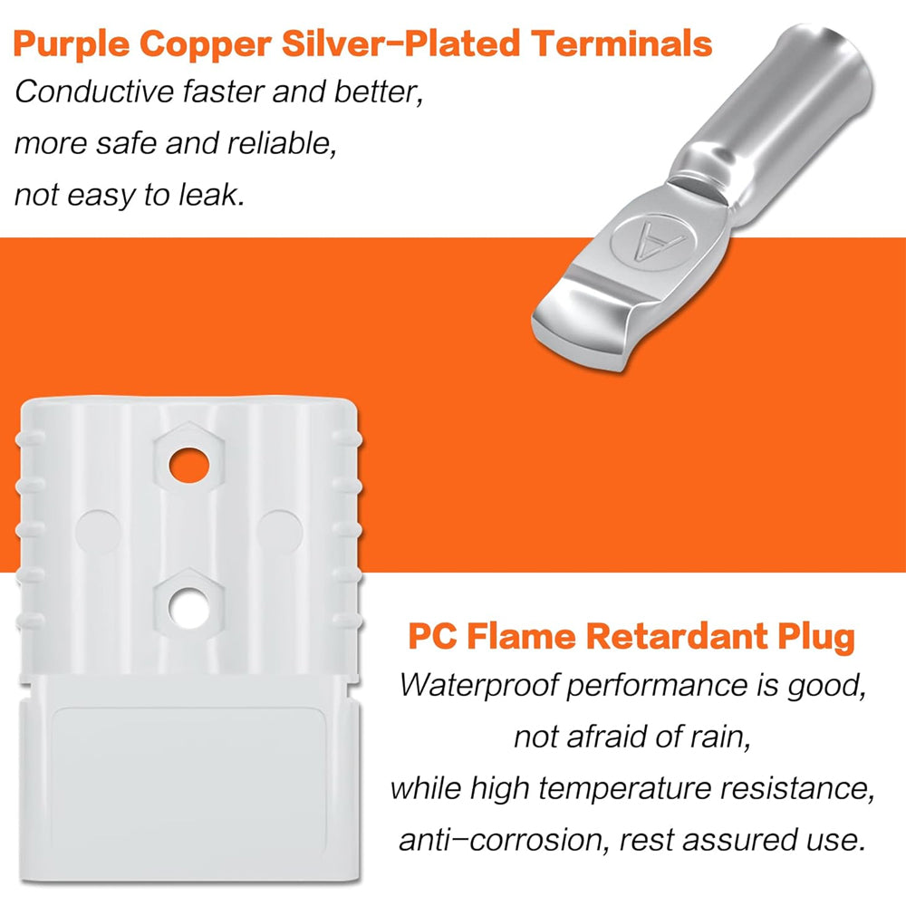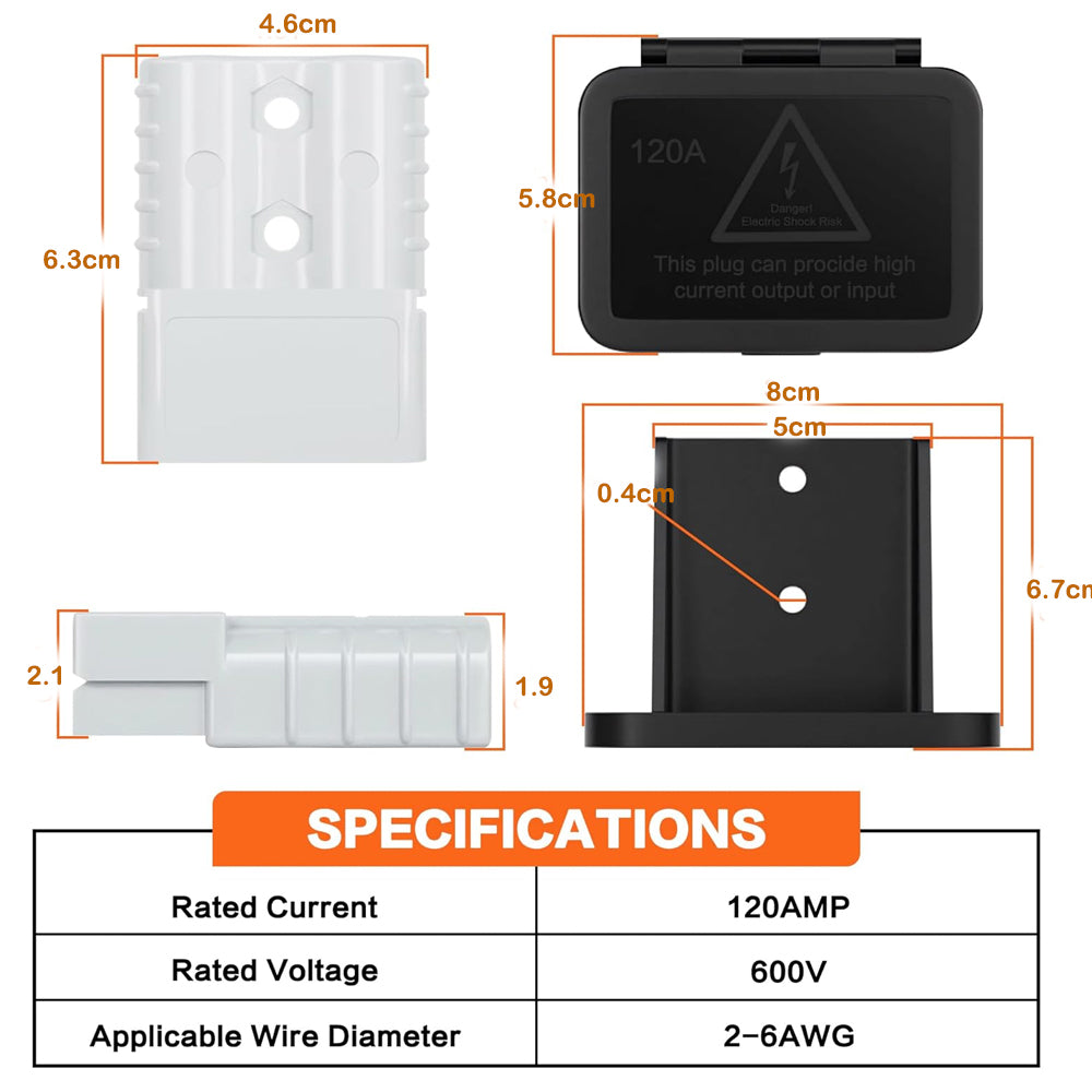 Working Mode:The battery quick connectors are compatible with 2-10 gauge cables, with a voltage rating of 600V and a capacity of 120 amps