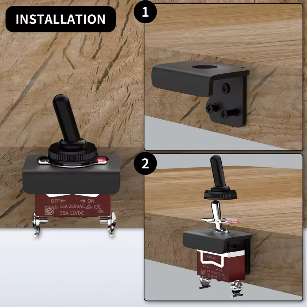 【Mounting Bracket】Toggle switch mounting bracket can be installed in any suitable position for convenient switch operation.The diameter of the toggle switch mounting hole is 12mm.