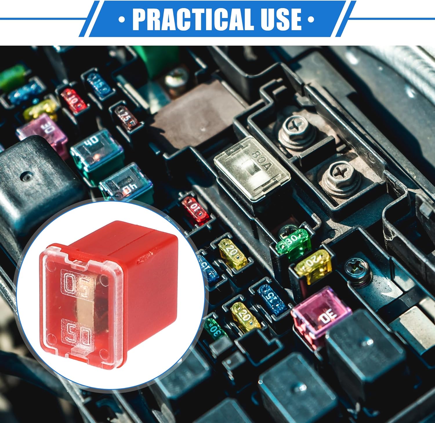 1 x 50Amp Red Mini Slow Blow Fuse Block 10mmx12mm x 16mm High 50A Fuse (1pc)