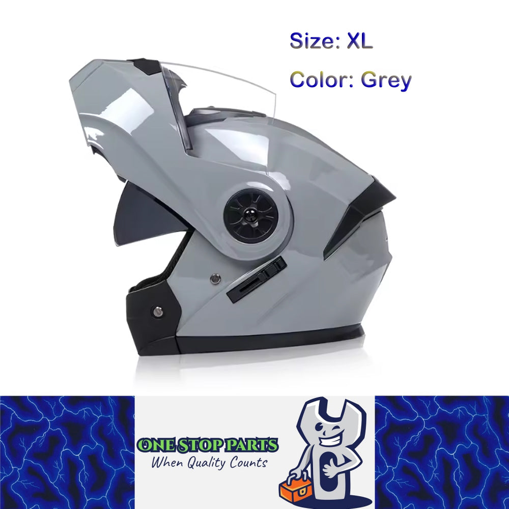 1 x Grey Size XL Motorcycle Full Face Helmet Men Women Fashion Dual Lens Helmet