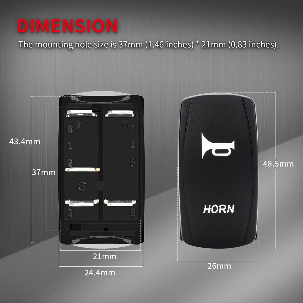 This utv rocker switch mounting hole size is (37.2 mm) x (21.2 mm). This is the standard size for most in modern vehicles.