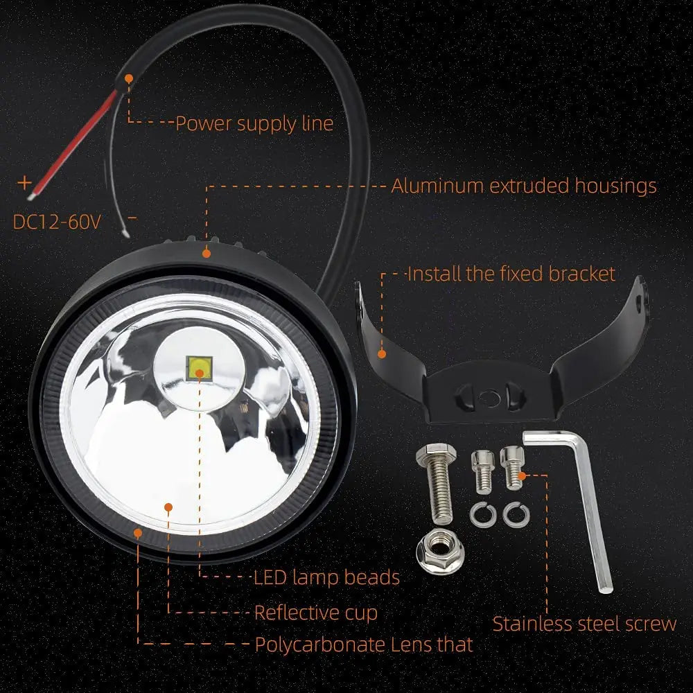 1 x LED Work Light Round Lamp 60W 98mm 12V-24V 6500K Spot Beam LED Spotlight