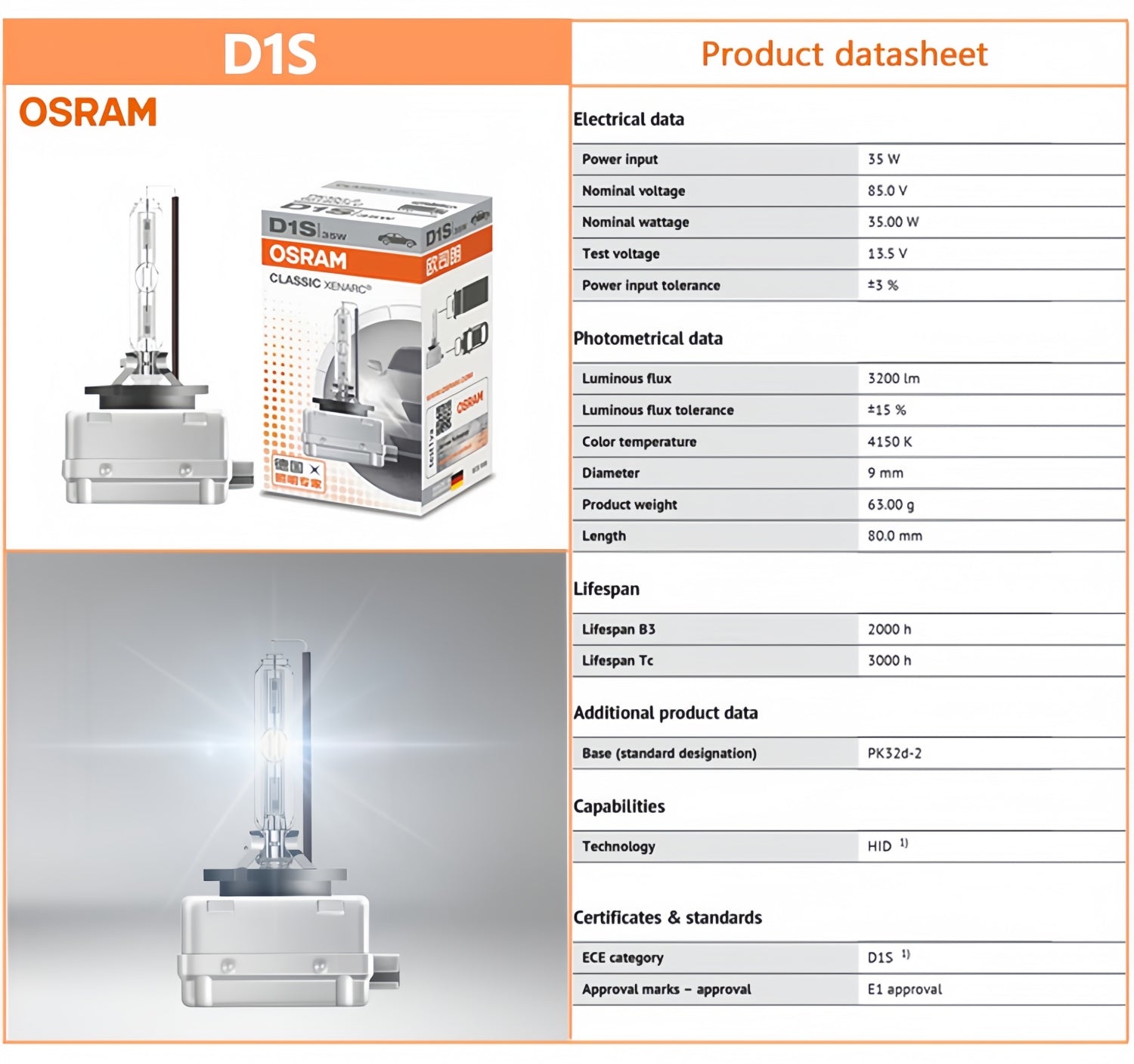 1 x OSRAM D1S HID Xenon Globe 4200K Headlight Original Osram D1S HID Bulb