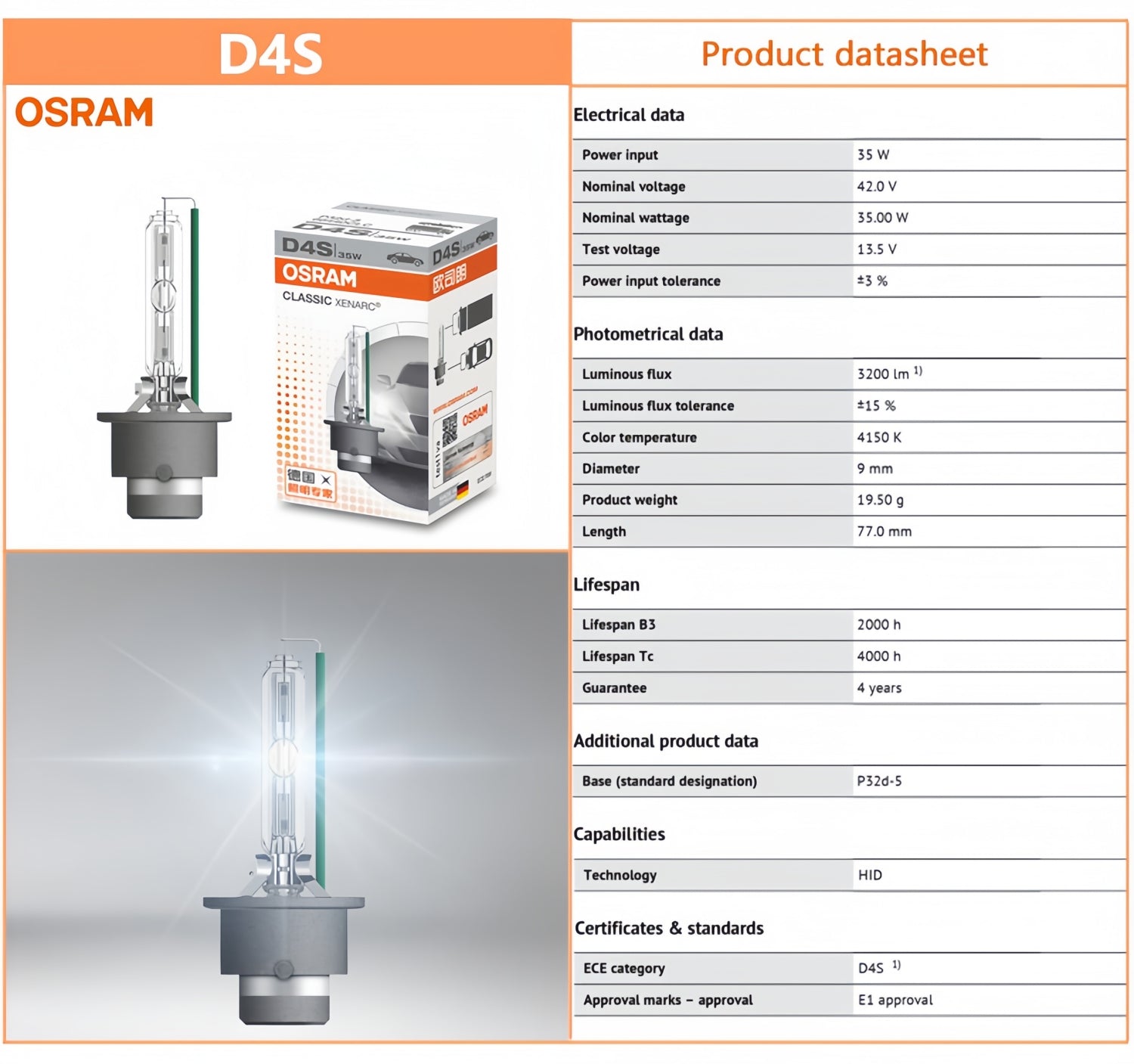 Here we offer 1 x OSRAM D4S HID Xenon Globe 4200K Headlight Original Osram D4S HID Bulb. Made in Germany.