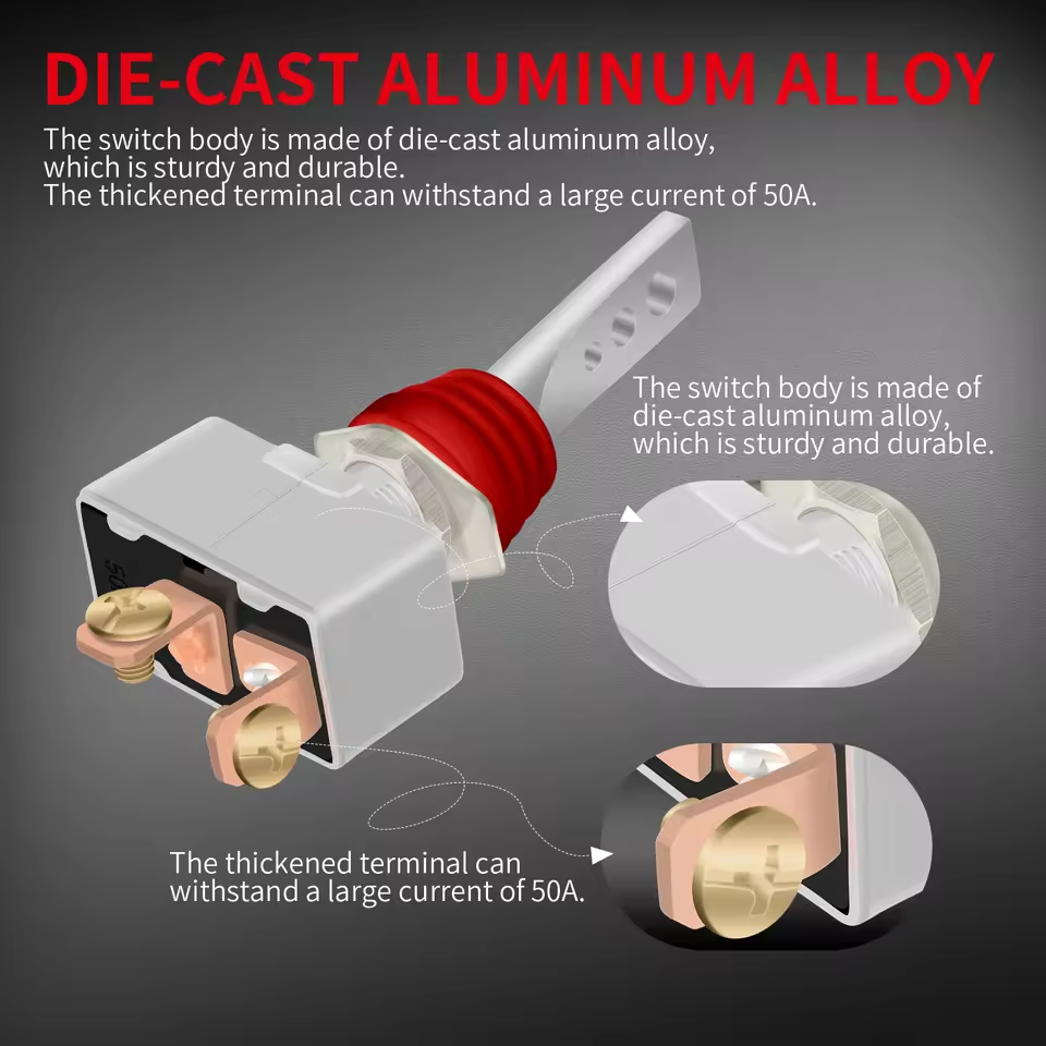 1 x Waterproof Toggle Switch 50 Amp 12V Heavy Duty Aluminum ON/OFF with Cover