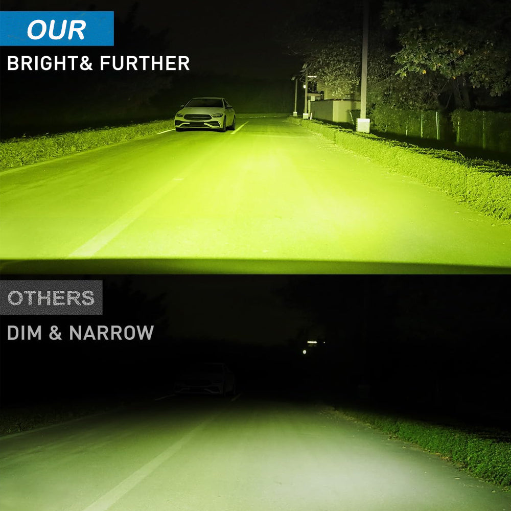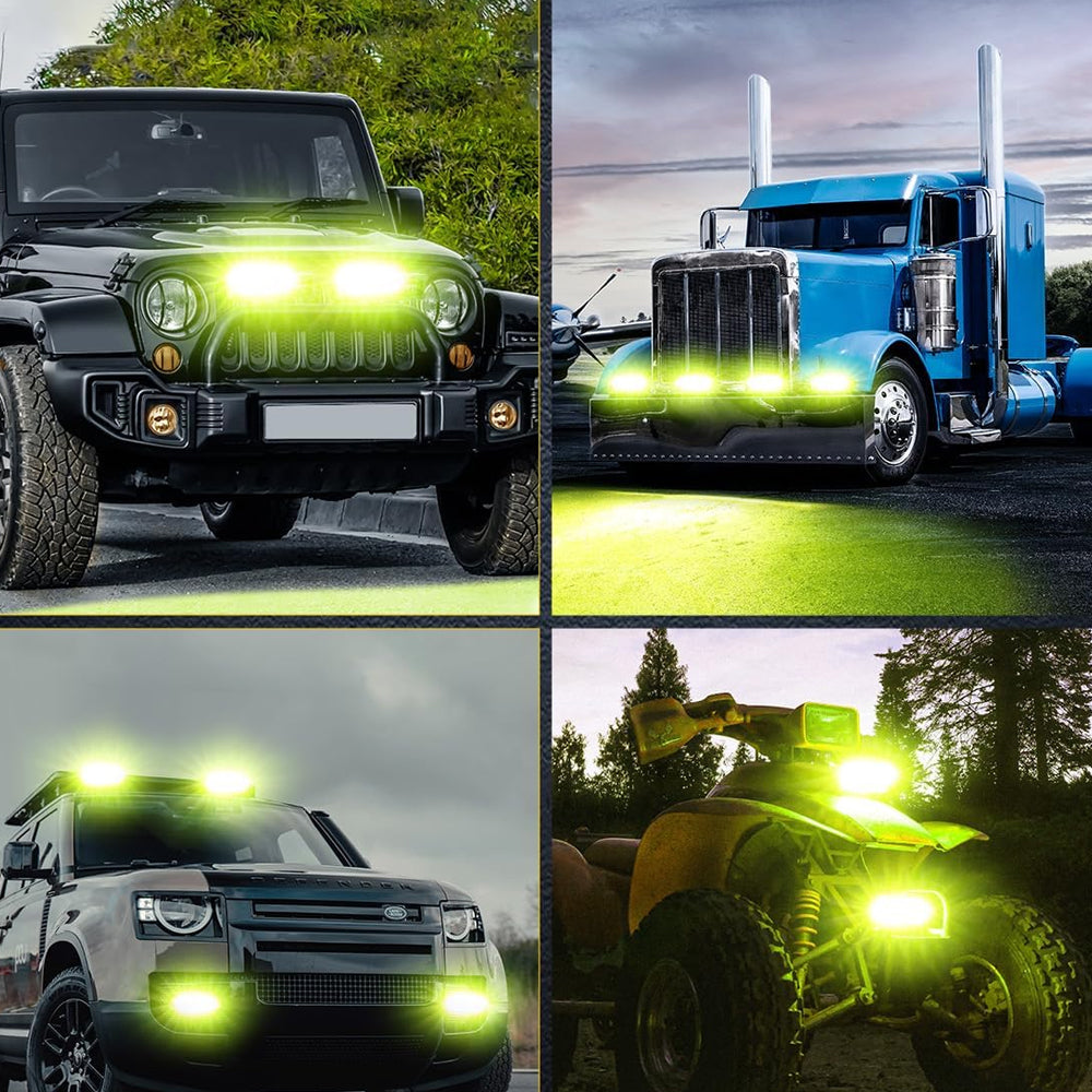 [Defeat Darkness Effortlessly] - This 50W LED truck lights projects a combo of yellow and green light, with transmittance of up to 97%, which will be more penetrating and brighter than a single color. Especially perfect as fog lights or offroad lights in rainy/foggy conditions. The 180° adjustable irradiation angle bracket ensures adaptability to conquer diverse terrains. Maximize your safety and experience on the cross-country.