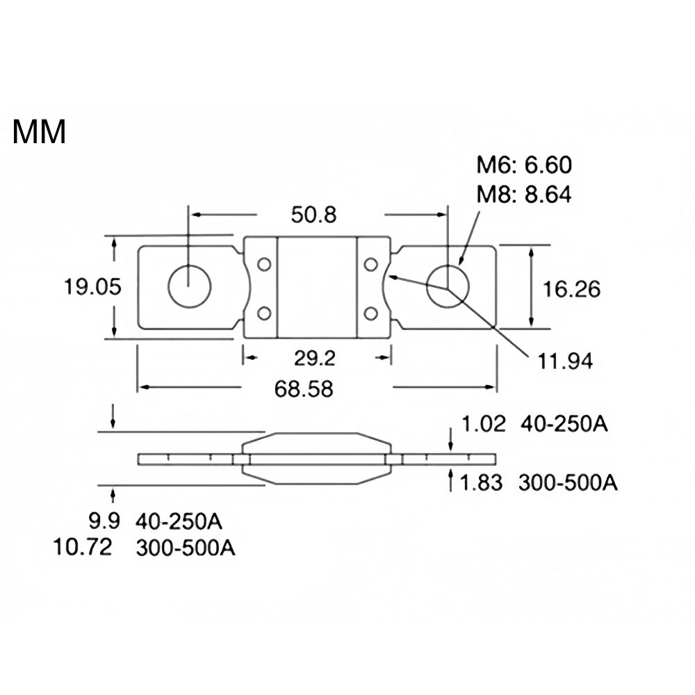 10 x 100A Mega Fuses ANM 100Amp Fuses 68mmx16mm (Hole centres 51mm) 10pcs