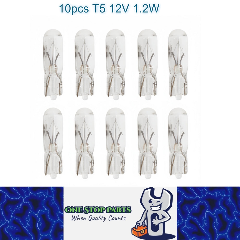Here we have a 10pc pack 12V 1.2W T5 Wedge Warm White Globes TYPE T-5mm Dashboard Coated Globes.