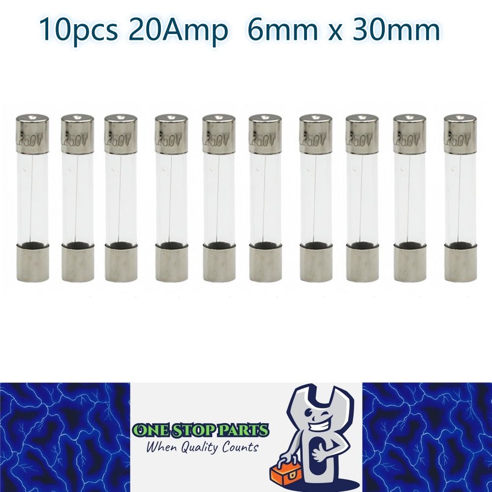 10 x 20Amp Glass Fuses 6mm x 30mm Long 20A Glass Fuse suits Vintage Car and Bike