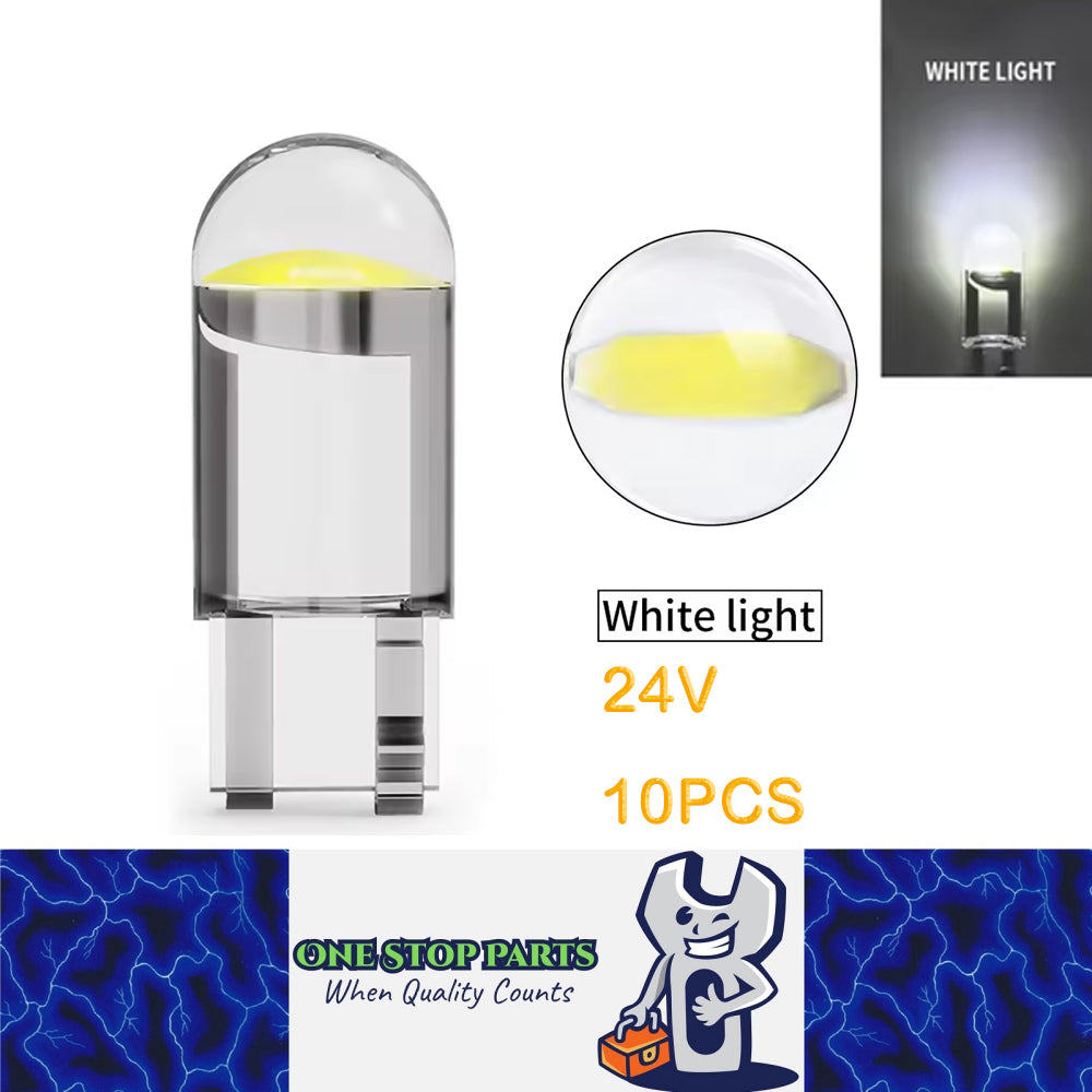 10 X 24V Cool White T10 Dome Head COB LED Globes Ideal for Dash Lights Parkers