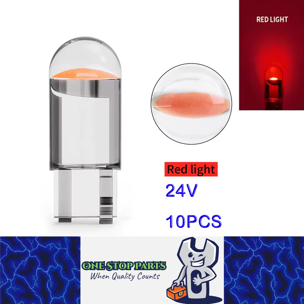 10 X 24V Red T10 Dome Head COB LED Globes Ideal for Dash Lights Parkers