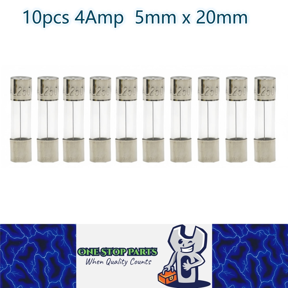 10 x 4Amp Glass Fuses 5mm x 20mm Long 4A Glass Fuse suits Vintage Cars and Bikes