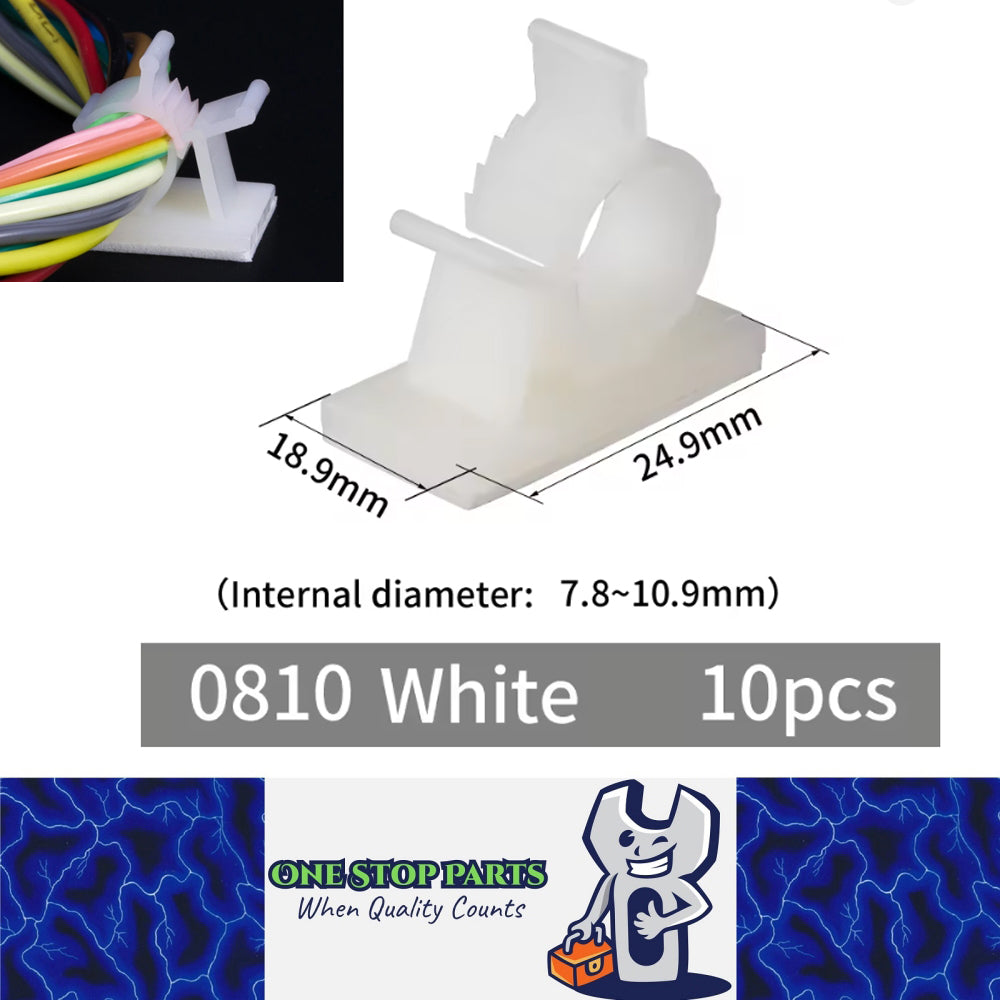 10 x Adjustable Cable Clips ID7.8-10.9mm Self-Adhesive Cord Holders Wire Clamps