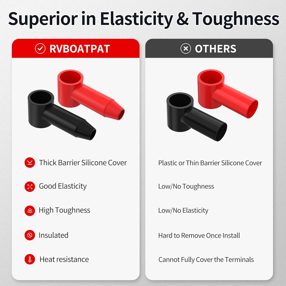 ★Great Insulation: The insulated silicone cover is designed to protect battery terminals from exposure. Its good insulating performance helps cover exposed terminals or contacts, protecting against electrical short circuit or accidental contact