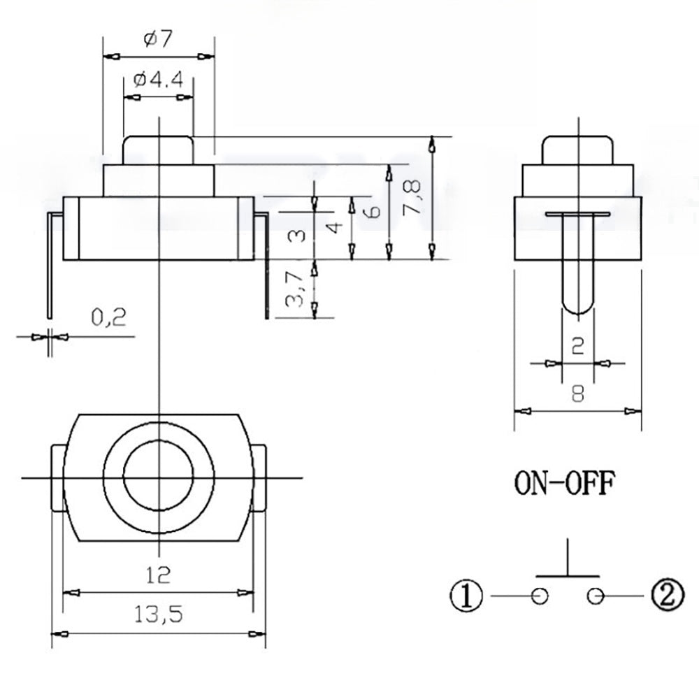 Micro Push Button Switch,widely used in electric appliance, electric torch, flashlight, or electronic DIY projects Terminal: 2 pins; Model: 1208, Rated Voltage: DC 30V, Rated Current: 1A, Contact Resistance: 200M ohm max, Insulation Resistance: 100M ohm min; Usage: In the electric automatic control circuit, it is used to send the control signal manually to control contactor, relay, electromagnetic starter, etc. Qty: 10pcs |