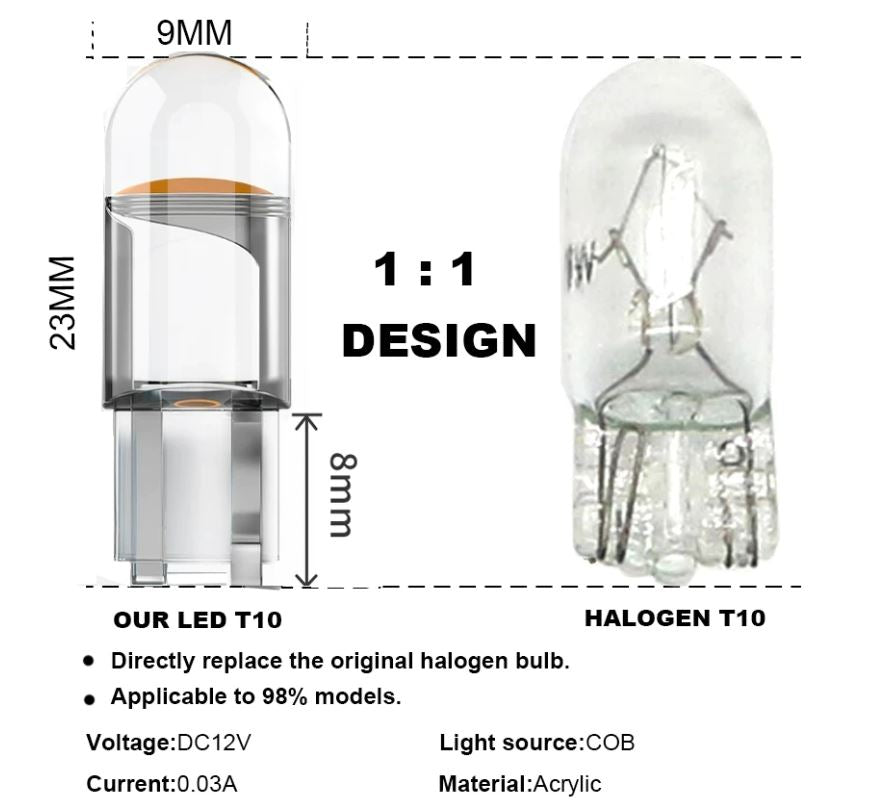 10 X COOL WHITE T10 DOME HEAD COB LED GLOBE REPLACEMENT FOR DASH LIGHTS PARKERS