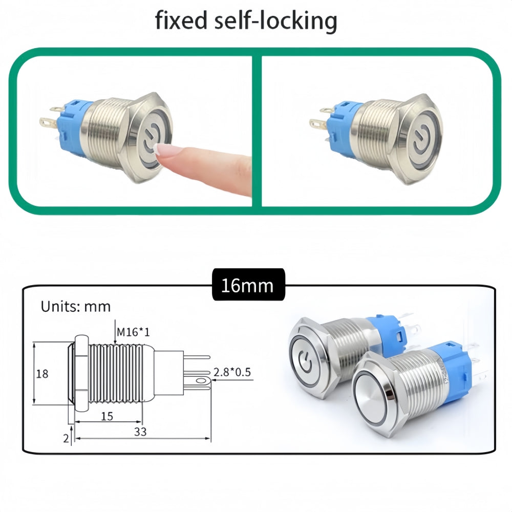 Constructed from robust metal, this switch is built to withstand the demands of both residential and commercial settings. Its durable construction ensures longevity and reliability, making it an ideal choice for environments where performance is paramount. The switch's momentary/latching functionality allows for versatility in operation, catering to different user preferences. Whether you need a switch that automatically resets or one that locks in position, this push button switch offers both options to suit your specific requirements.