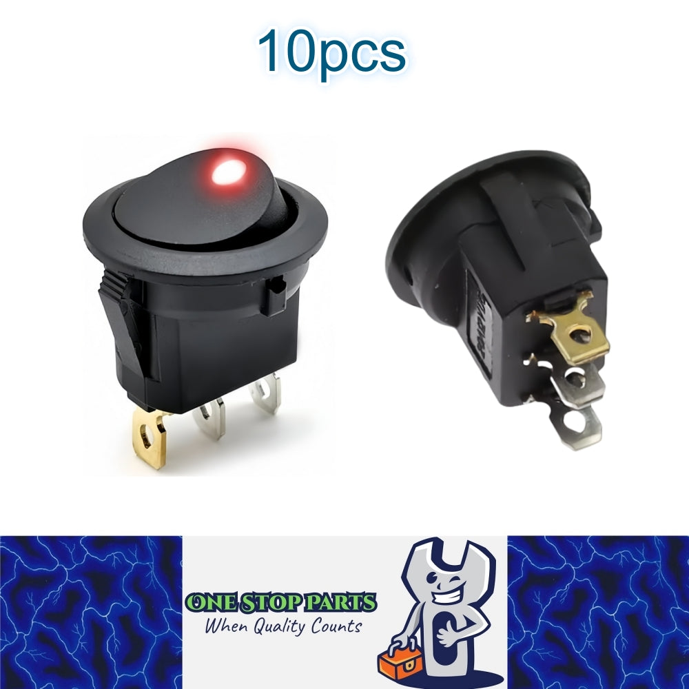 Here we have 10 x Round Rocker Switch Car Boat Dashboard 3 Pin ON-OFF 12V DC 20A Switch Button with Red LED Light.