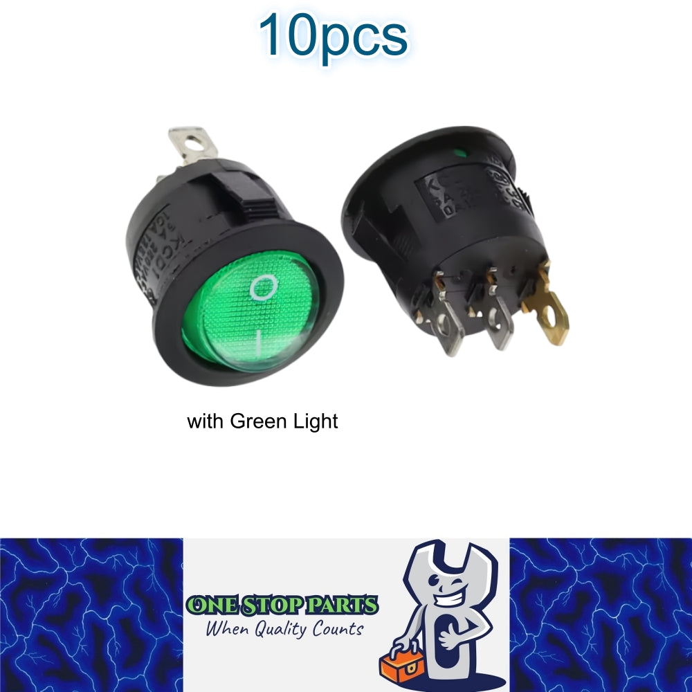 Here we have 10 x Round Rocker Switch Car Boat Dashboard 3 Pin ON/OFF Power Switch Green Button.