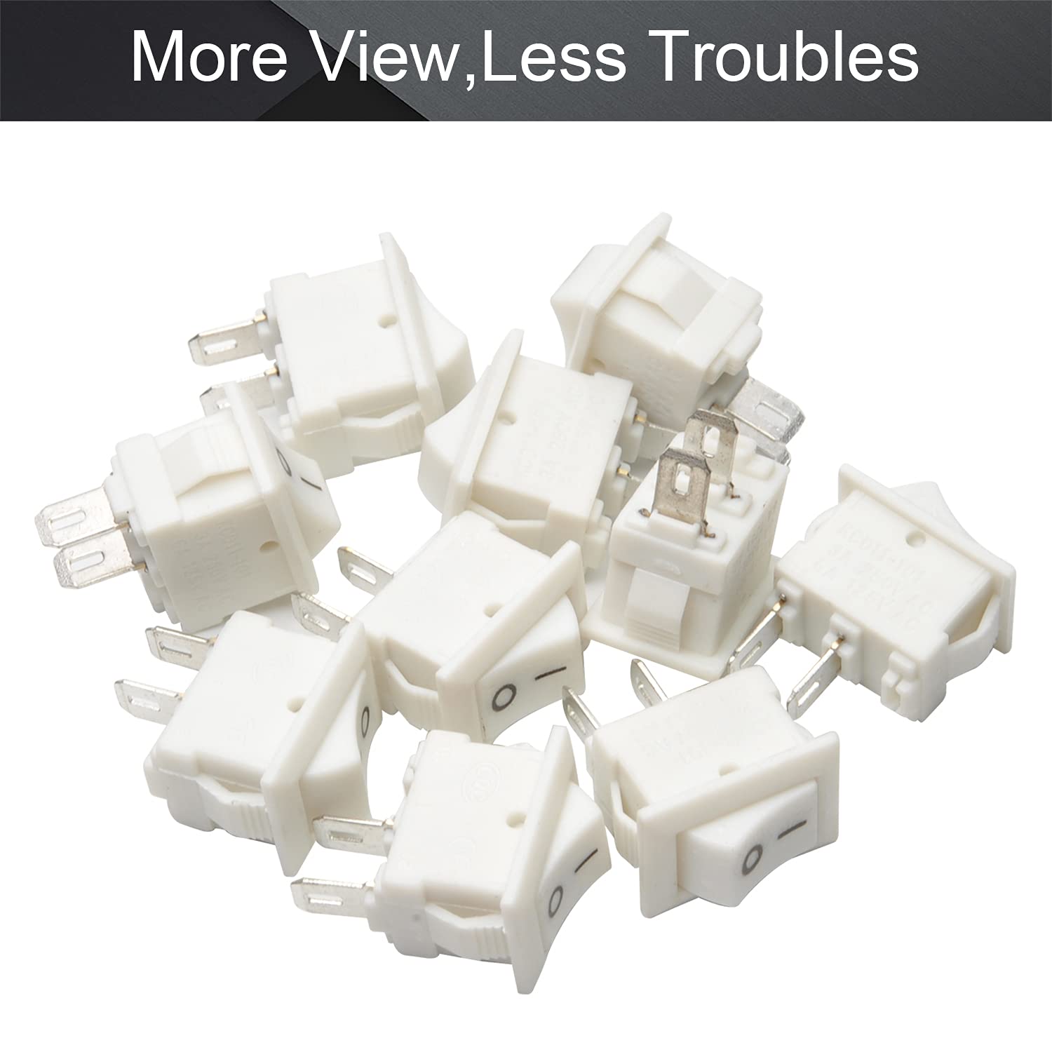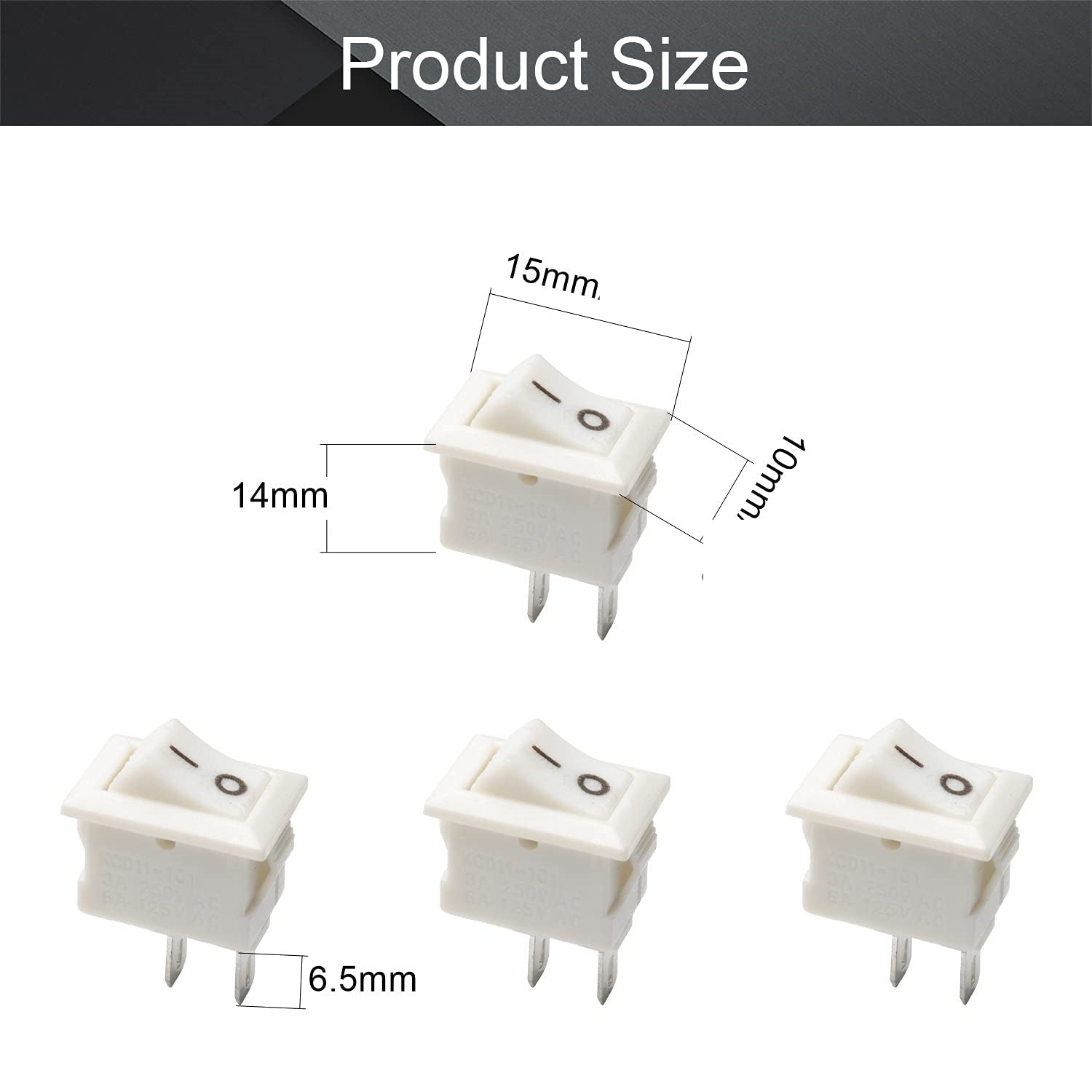 Here we have 10 x White Rocker Switches 10x15mm ON/OFF 2 Pin SPST Panel Mount Mini Switches.