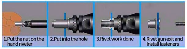 Here we offer a New Nut Rivet Gun with attachments and a pack of 100pcs Assorted Tan Alloy Nut Rivets as per list below.