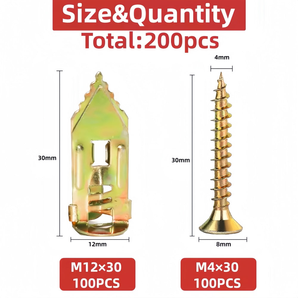 100 Sets Drywall Anchors & Screws Kit 30mm No Drill Wall For TV Shelf Cabinet