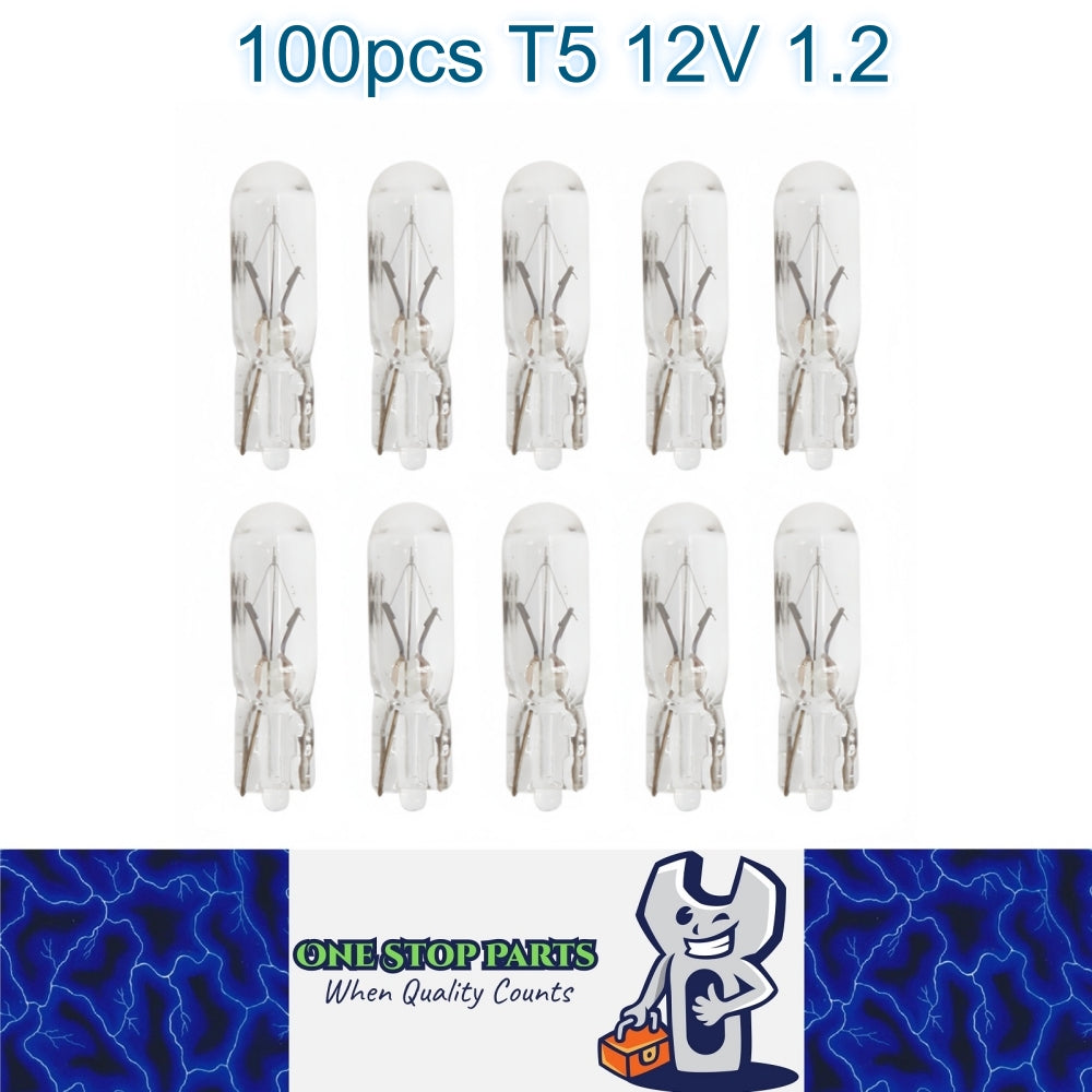 Here we have a 100pc pack 12V 1.2W T5 Wedge Warm White Globes TYPE T-5mm Dashboard Coated Globes.