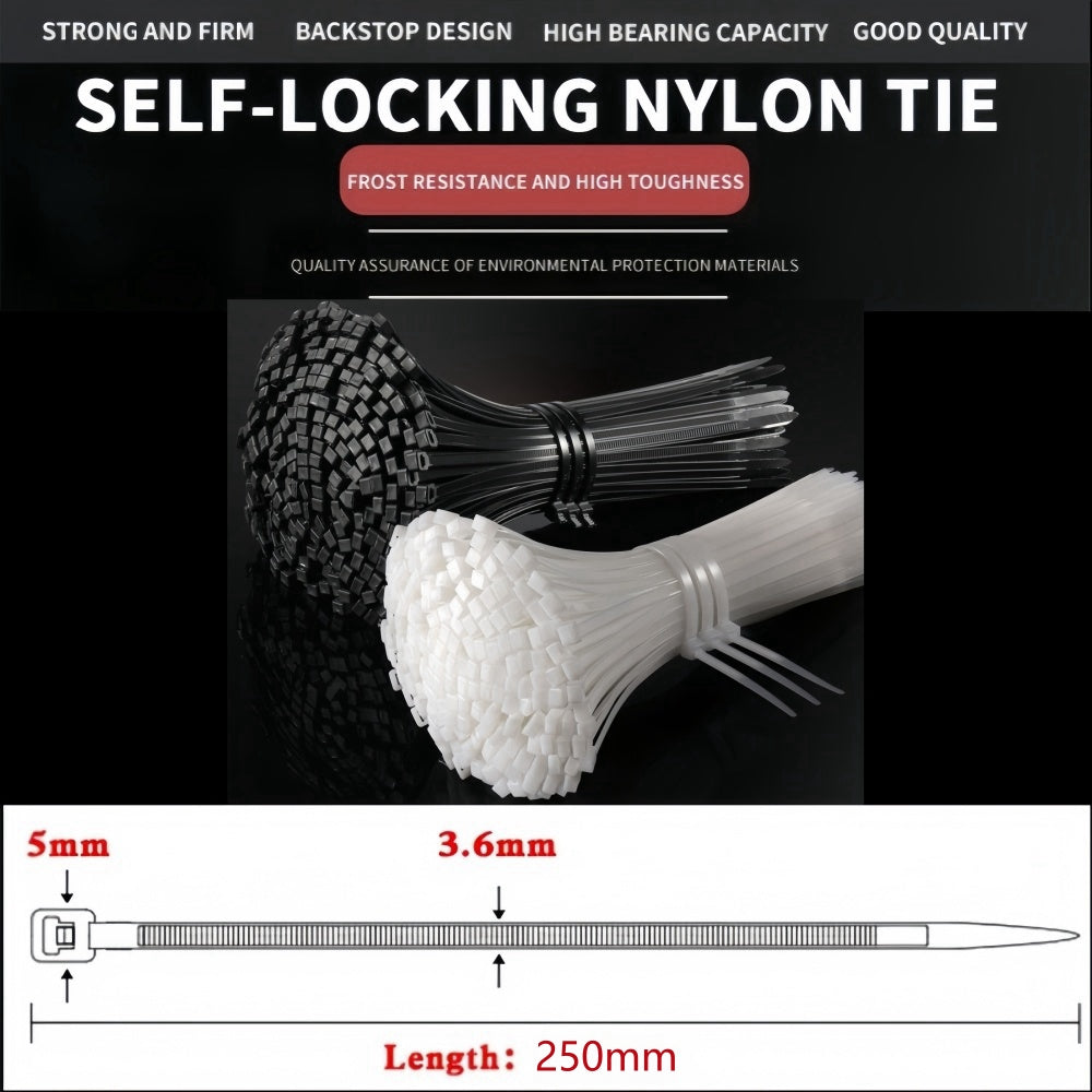100 x 250mm White Cable ties 3.6mm x 250mm White Plastic Nylon Ties (100pcs)