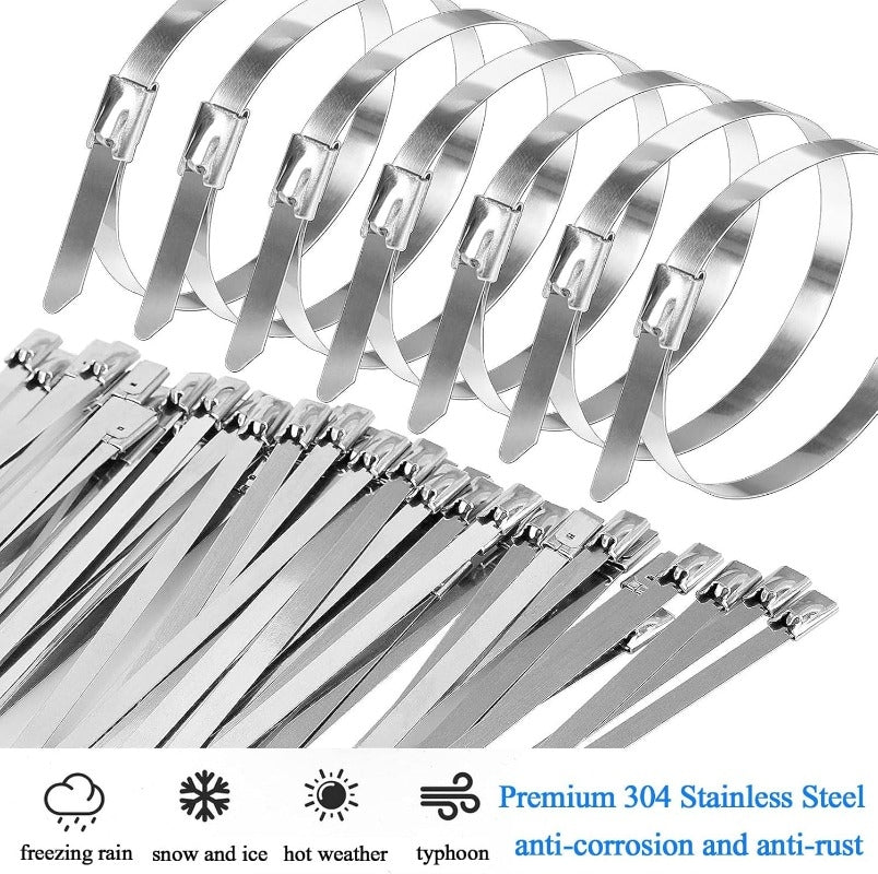 Metal zip ties made of 304 stainless steel. These heavy duty zip ties are 4x stronger than regular plastic zip ties. These stainless steel zip ties mean they are High temperature resistant, Cold resistant, Rust and Corrosion resistant.