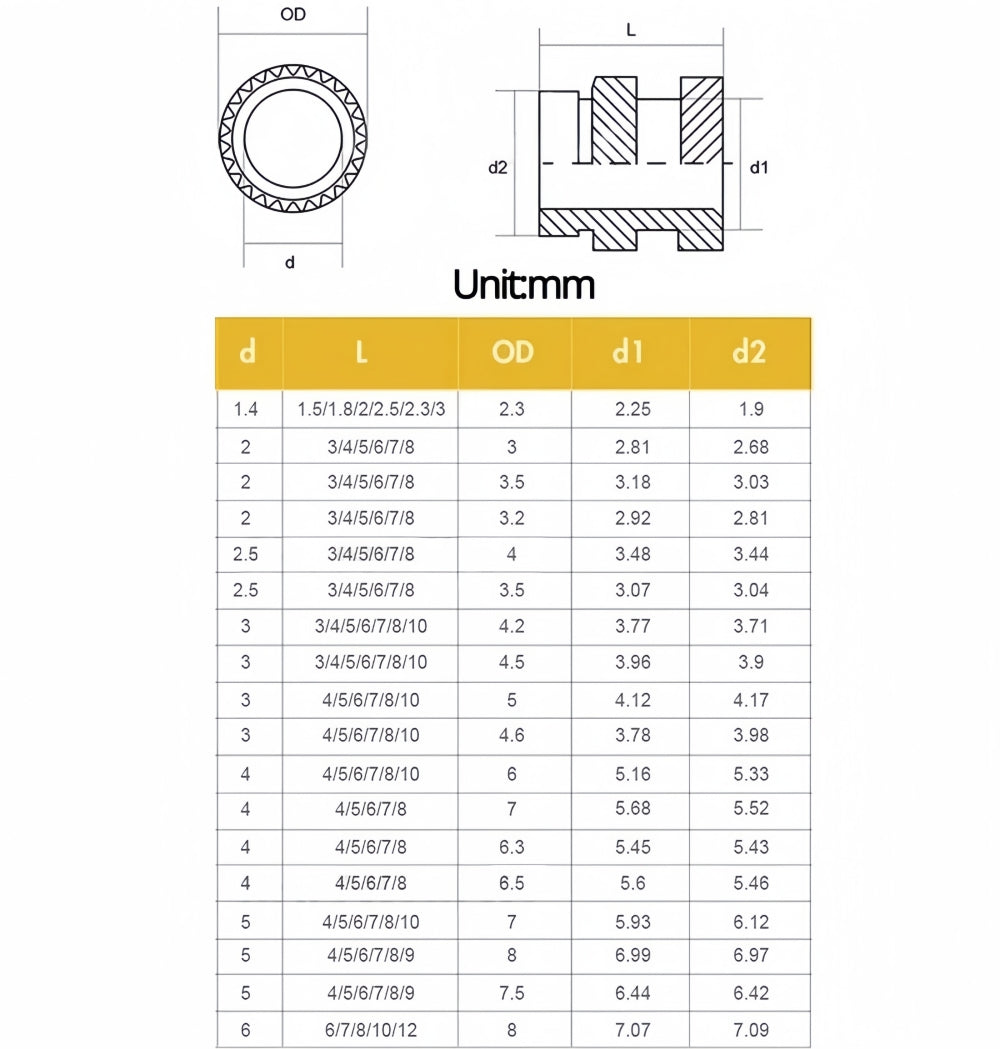 【High-Quality Threaded Inserts】- Crafted from top-tier brass materials, these threaded inserts boast outstanding thermal conductivity, corrosion resistance, and durability. They exhibit remarkable resistance against breakage and deformation. Withstanding temperatures exceeding 300°C / 585°F, they easily endure the harsh heat generated during plastic thermal shaping processes.