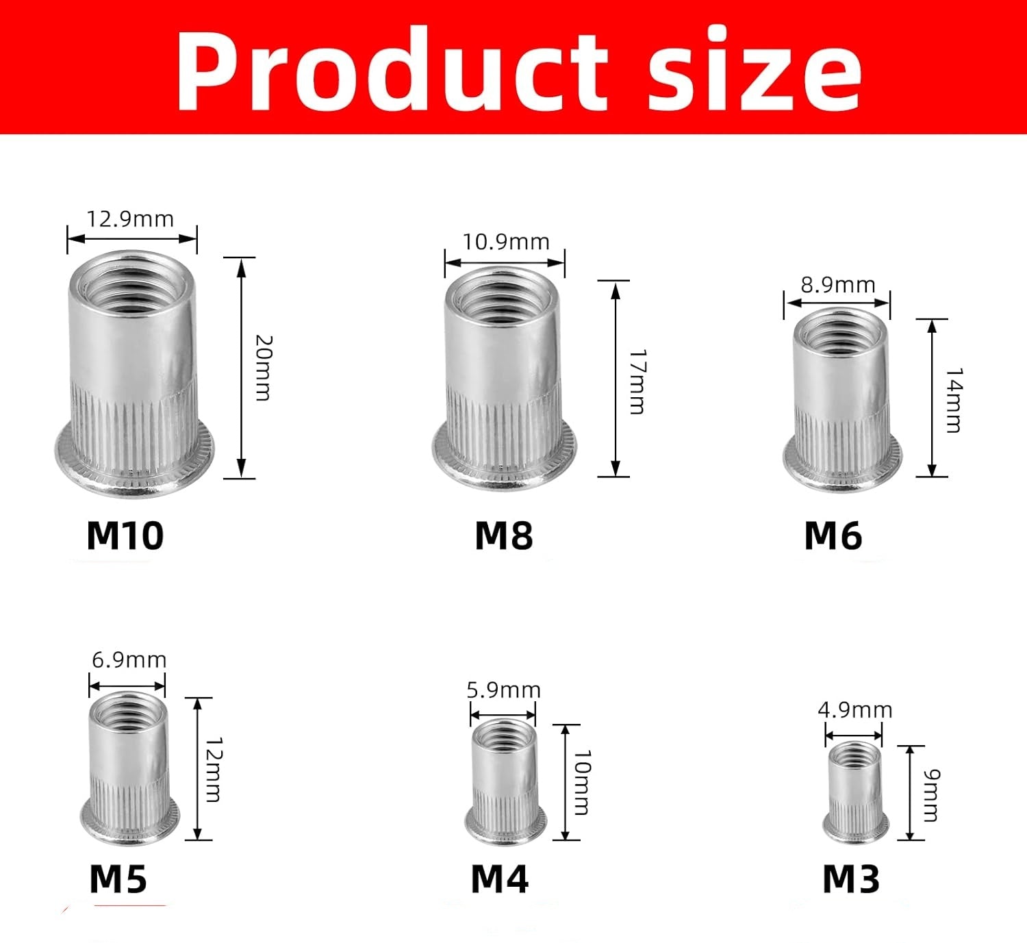 100 x M6 Aluminium Alloy Rivet Nuts- 12.6mm Wide x 15mm Long Suits 9mm Hole