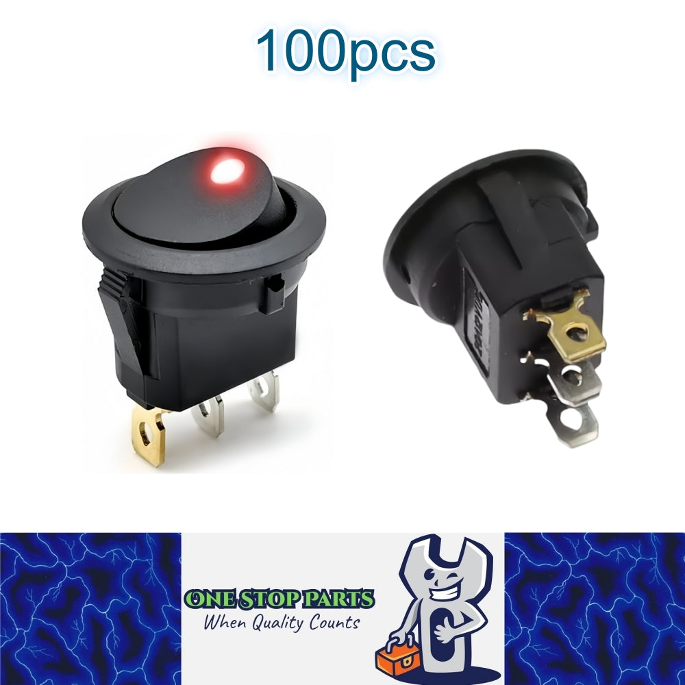 Here we have 100 x Round Rocker Switch Car Boat Dashboard 3 Pin ON-OFF 12V DC 20A Switch Button with Red LED Light.