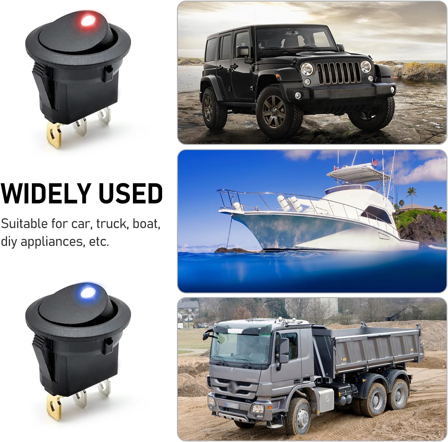 Widely Used: This is a Round LED rocker switch, it can work in any cars and others with a 12 Volt DC source.