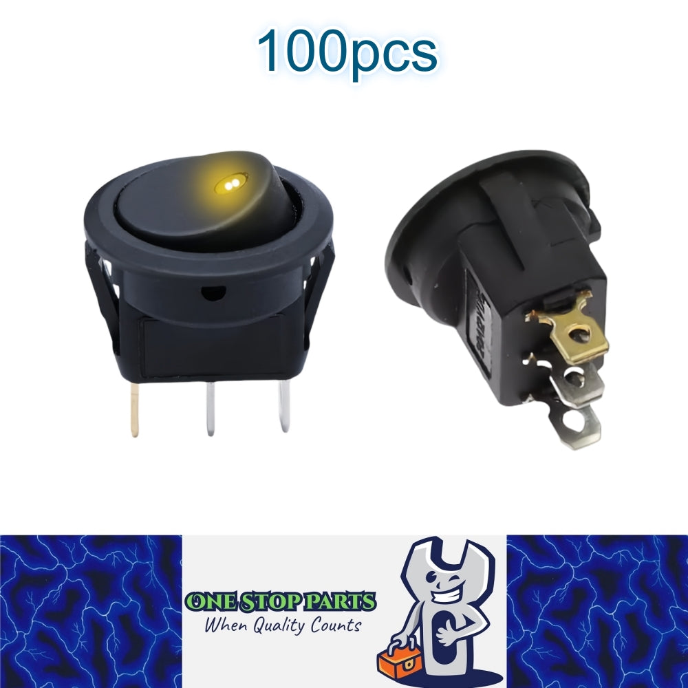 Here we have 100 x Round Rocker Switch Car Boat Dashboard 3 Pin ON-OFF 12V DC 20A Switch Button with Yellow LED Light.