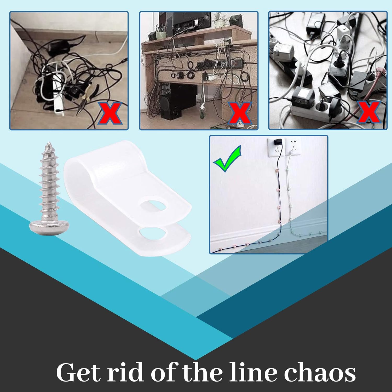 ★【Easy to Use】: The clips are designed as R-type, stylish, flexible, simple and innovative. Only need to put the wire into the round hole and fix it with a screw on the wall or the ground after tightening. Then tighten the wires with one screw. Fast and convenient.