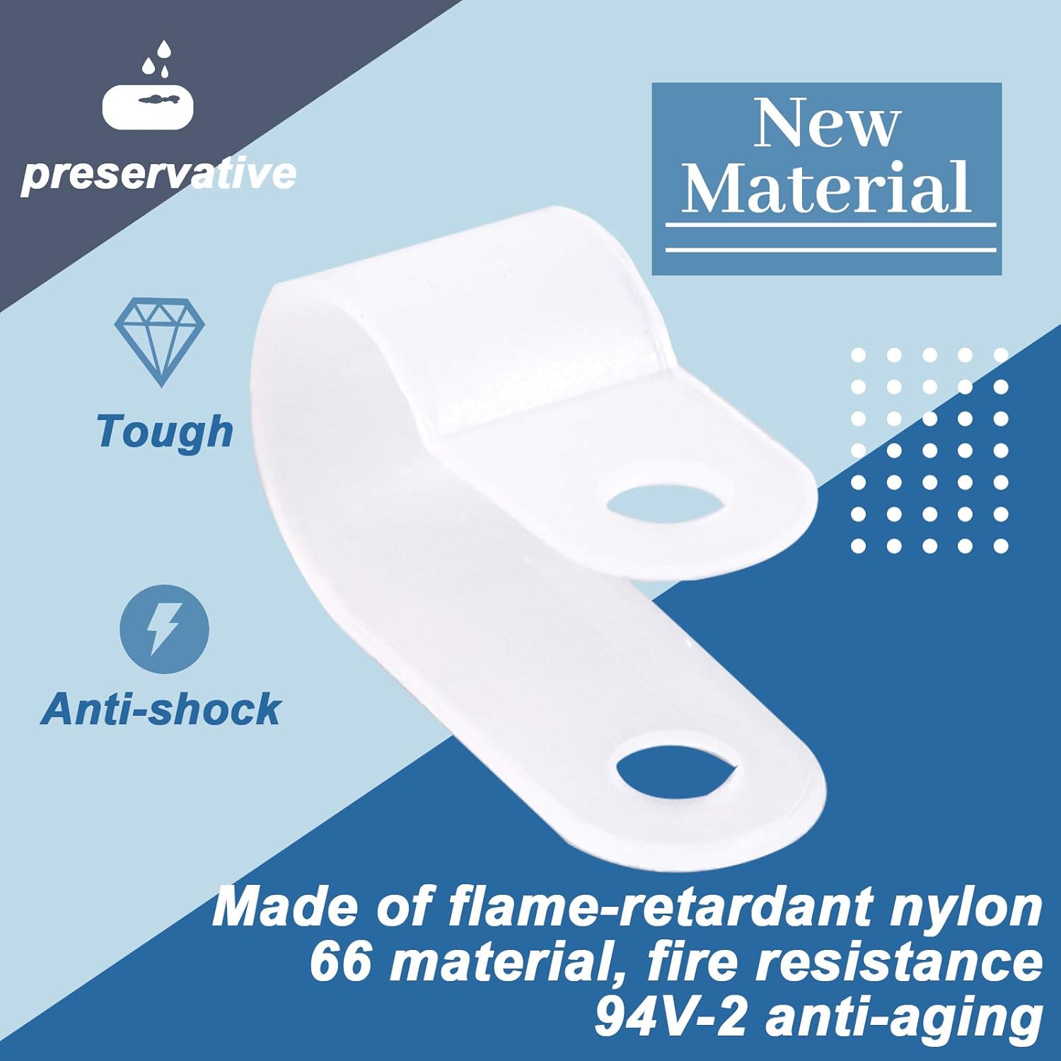 100 X White 8.4mm P Clamps Cable saddle clips R-Type Nylon Plastic Clamps 100pcs
