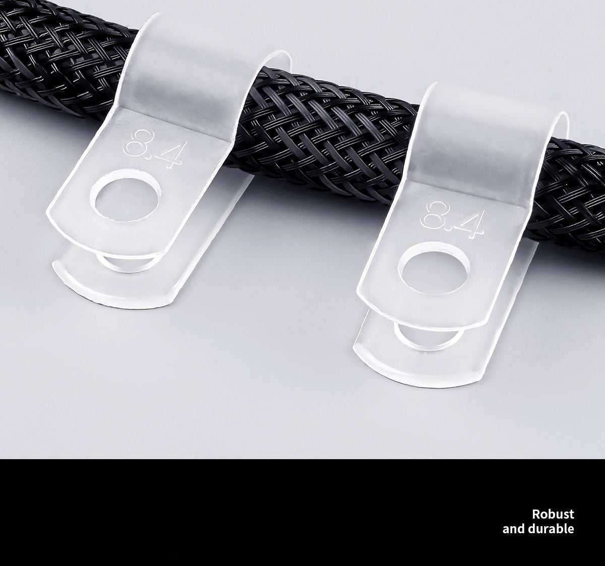Here we offer a 100pc pack of White 8.4mm P Clamps Cable saddle clips R-Type Nylon Plastic Clamps.