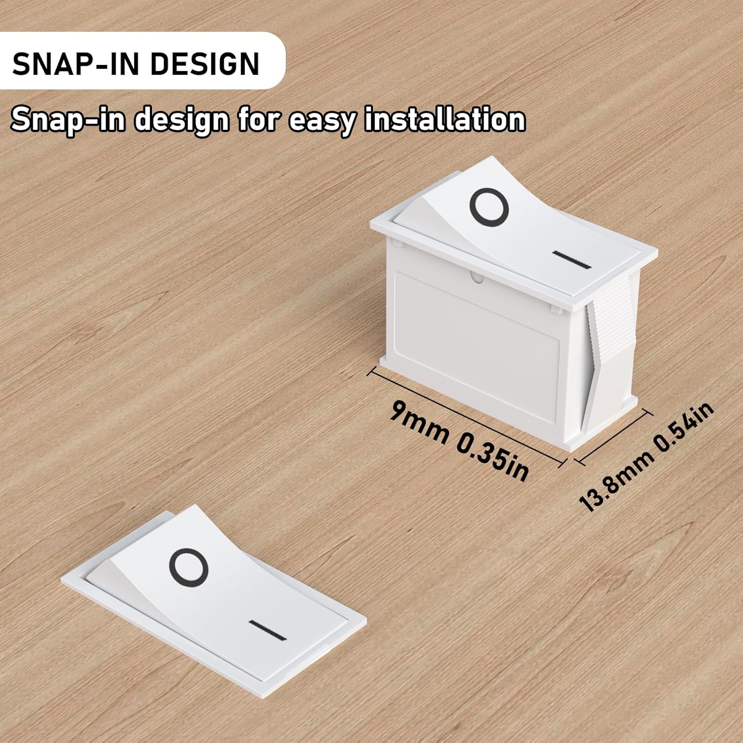 This mini rocker switch is widely used for various kinds of auto, household appliances and DIY power control, such as car, boat, truck, motorcycle panel DIY control, lights, water dispenser, generator, coffee pot, speaker, TV, commutator Vacuum Cleaner and breadboard DIY power control.