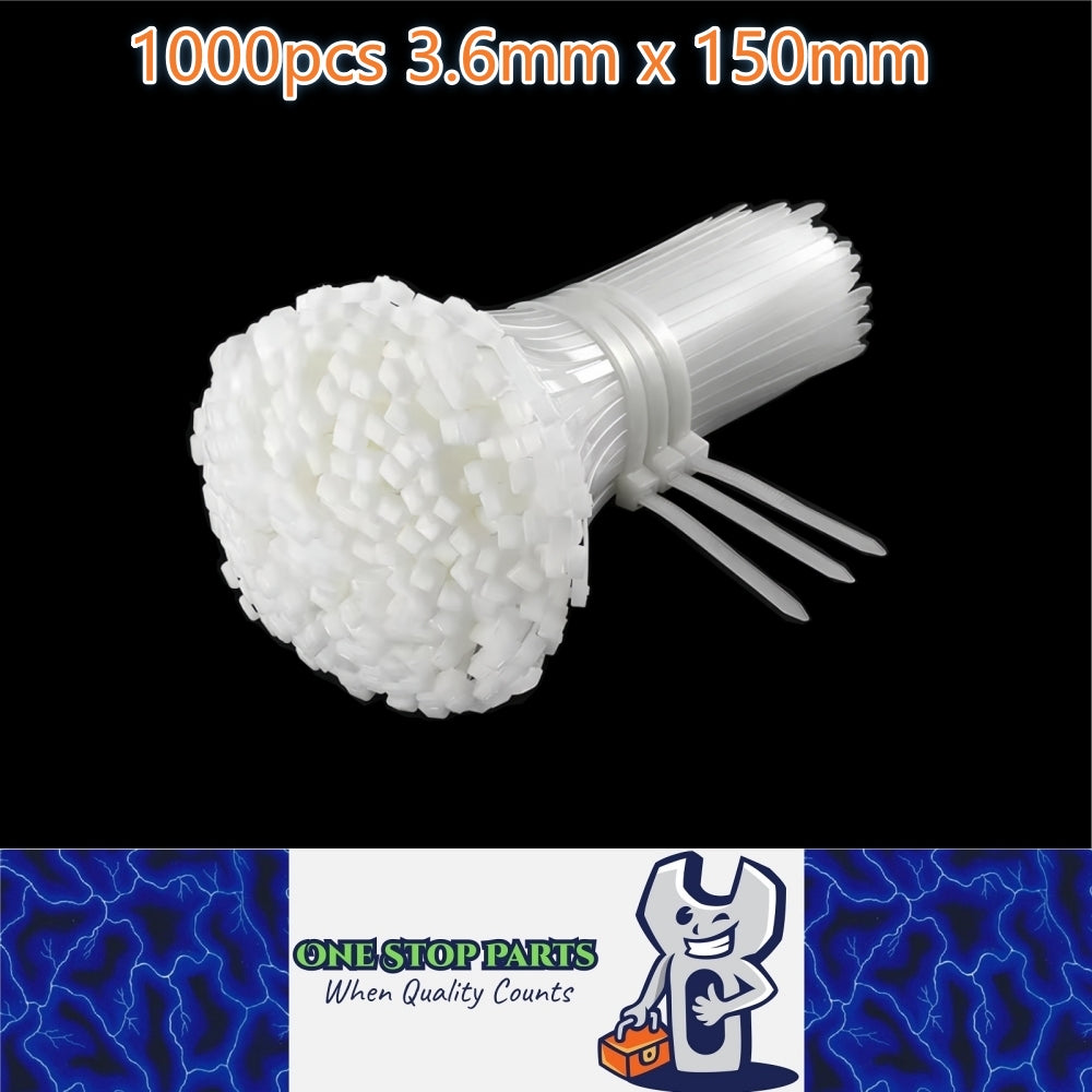 1000 x 150mm White Cable ties 3.6mm x 150mm White Plastic Nylon Ties (1000pcs)