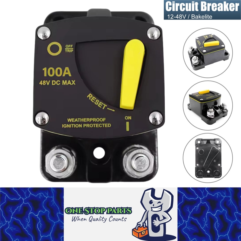 Here we have a Heavy Duty Marine 12v-48v 100A Manual Reset Circuit Breaker Ideal for Boat Yatch.