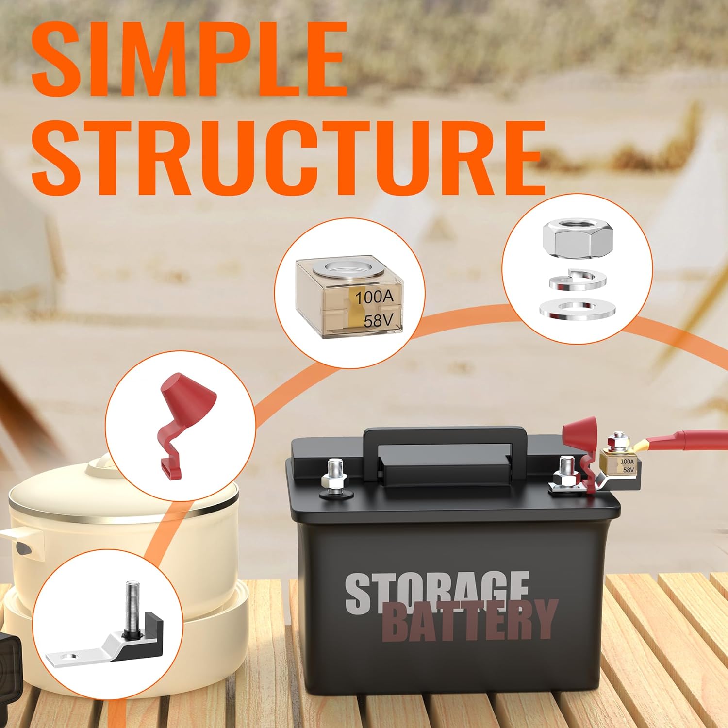 100A Terminal Mount MRBF Battery Fuse Block Kit 58V with M8 Stud Battery Fuse
