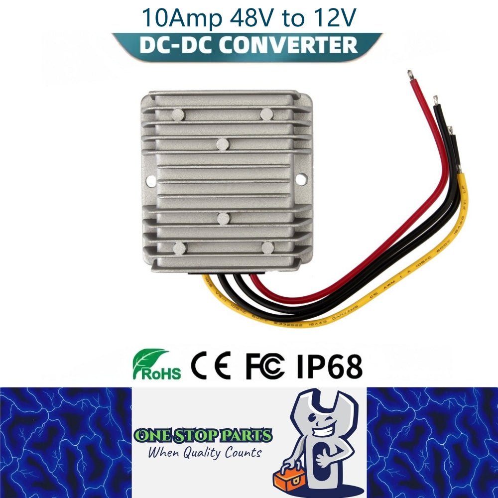 Here we have a 10Amp Heavy Duty Waterproof (30-60v) 48v - 12v Reducer Stepdown 48v to 12v 10A Converter Ideal for 12v Requirements.