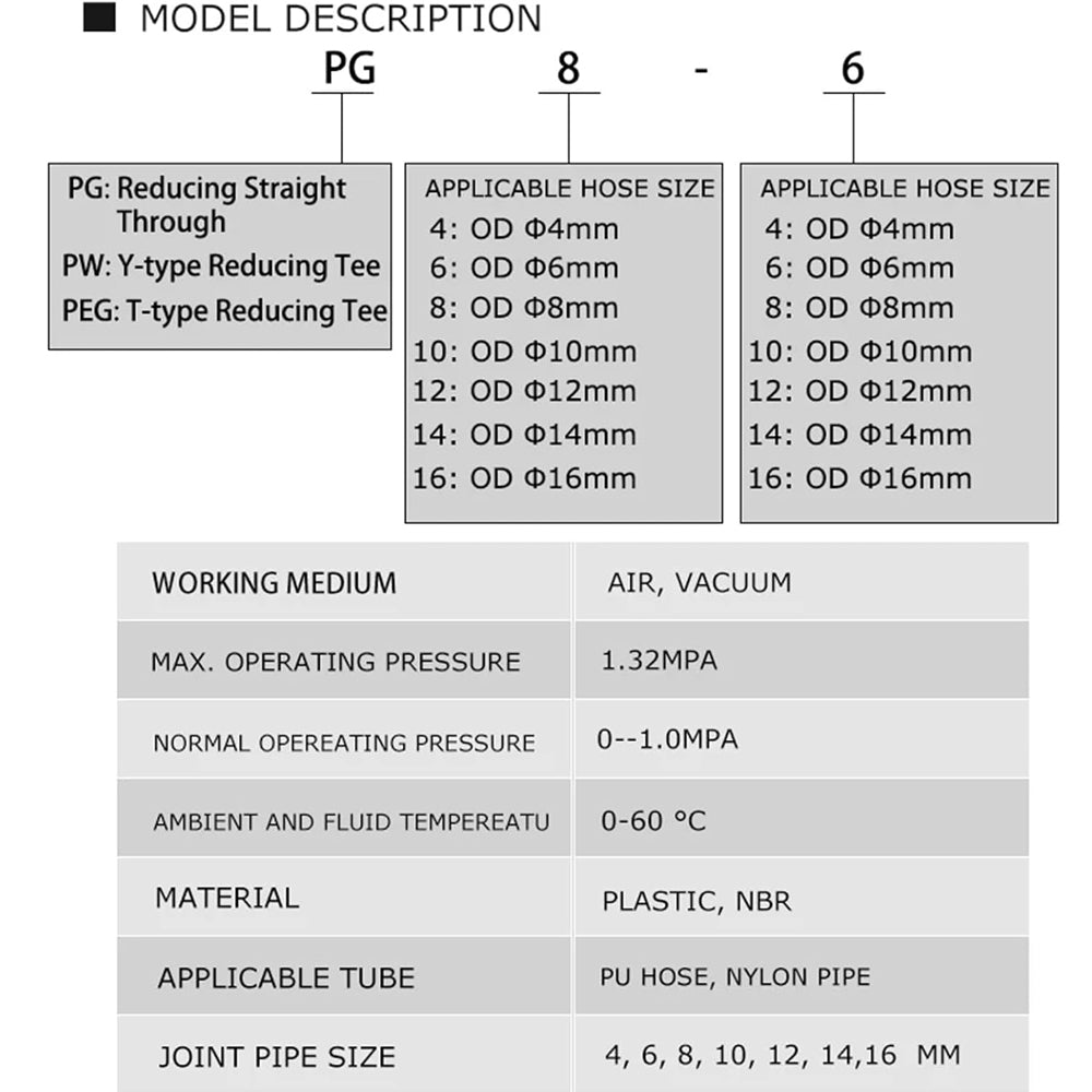 *Quantity: 10pcs PG6-4 Pneumatic Connectors