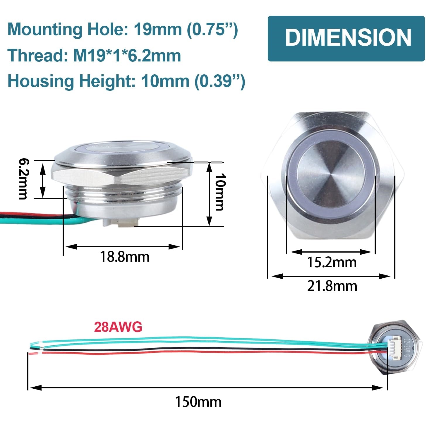 Here we have 19mm Metal Push Button Switch Ultra Thin Blue LED 12-24V Pre-Wired Momentary Self-Reset Switch.