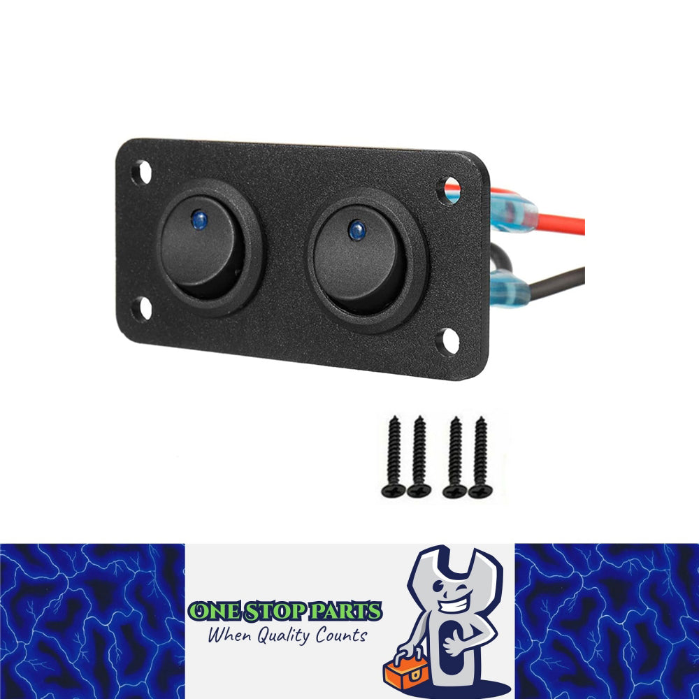 12/24V Double Rocker Button Switches on Panel with Blue LED Pre Wired with Screw