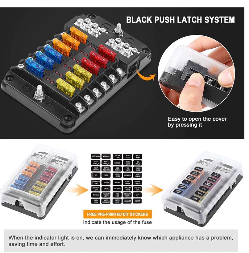 12 Way Fuse Box with cover and name plate stickers with busbar (1pc)