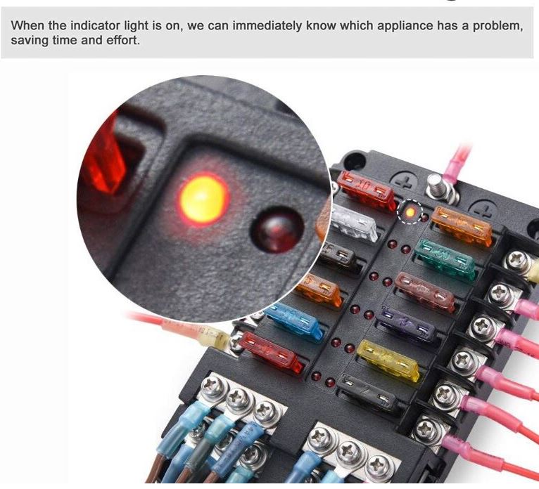 When a fuse blows it lights up the red led as a clear indicator that the fuse has blown, this is helpful when you don't have a test light to check circuit.