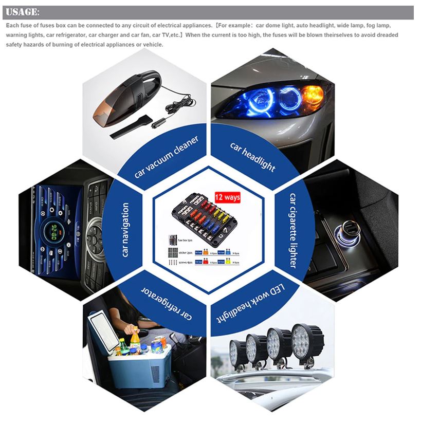 Here we have a new quality 12 way fuse box, takes standard wedge blade fuses, suits vehicle, trailer etc.